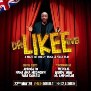 Ghanaian comic actor Ebenezer Akwasi Antwi, widely known as Dr. Likee or Aka Ebenezer, is set to headline an international comedy show dubbed Dr. Likee Live at Indigo at The O2 in London on Friday, May 22, 2026.